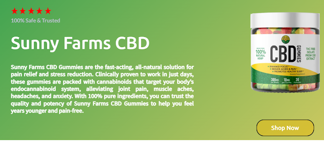 However — the critique: while the mechanism is plausible (CBD does interact with the ECS) there is limited transparent evidence for this specific product (dose per gummy, lab results, manufacturing transparency) to definitely deliver the claims.Sunny Farms™ CBD Gummies ➢ ➢ Get Exclusive Offers on Official Website - Upto 50% off in USA